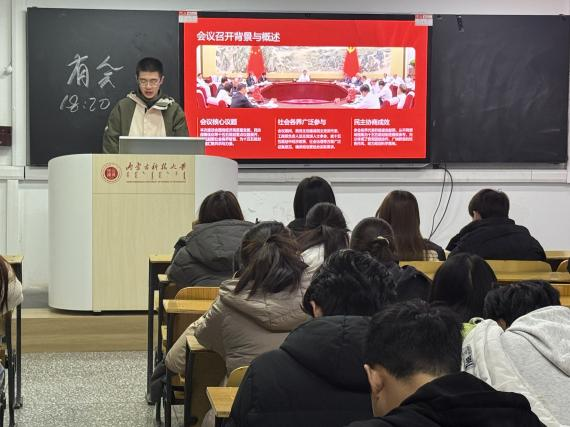 会上,董彬同志带领全体积极分子重温了习近平总书记在党外人士座谈会上的重要讲话。从“锚定基本实现社会主义现代化目标”的宏伟擘画,到“扎实推动高水平科技自立自强”的坚定部署;从“稳步推进共同富裕”的价值追求,到“动员全党全国各族人民团结奋斗”的时代号召,总书记的话语铿锵有力、掷地有声,既勾勒出国家发展的壮阔蓝图,更点燃了青年学子的理想之火。大家深刻认识到,“十五五”时期作为社会主义现代化建设的关键阶段,既是机遇叠加的黄金期,更是攻坚克难的奋斗期,青年一代唯有将个人成长与国家命运紧密相连,方能在时代浪潮中勇立潮头。