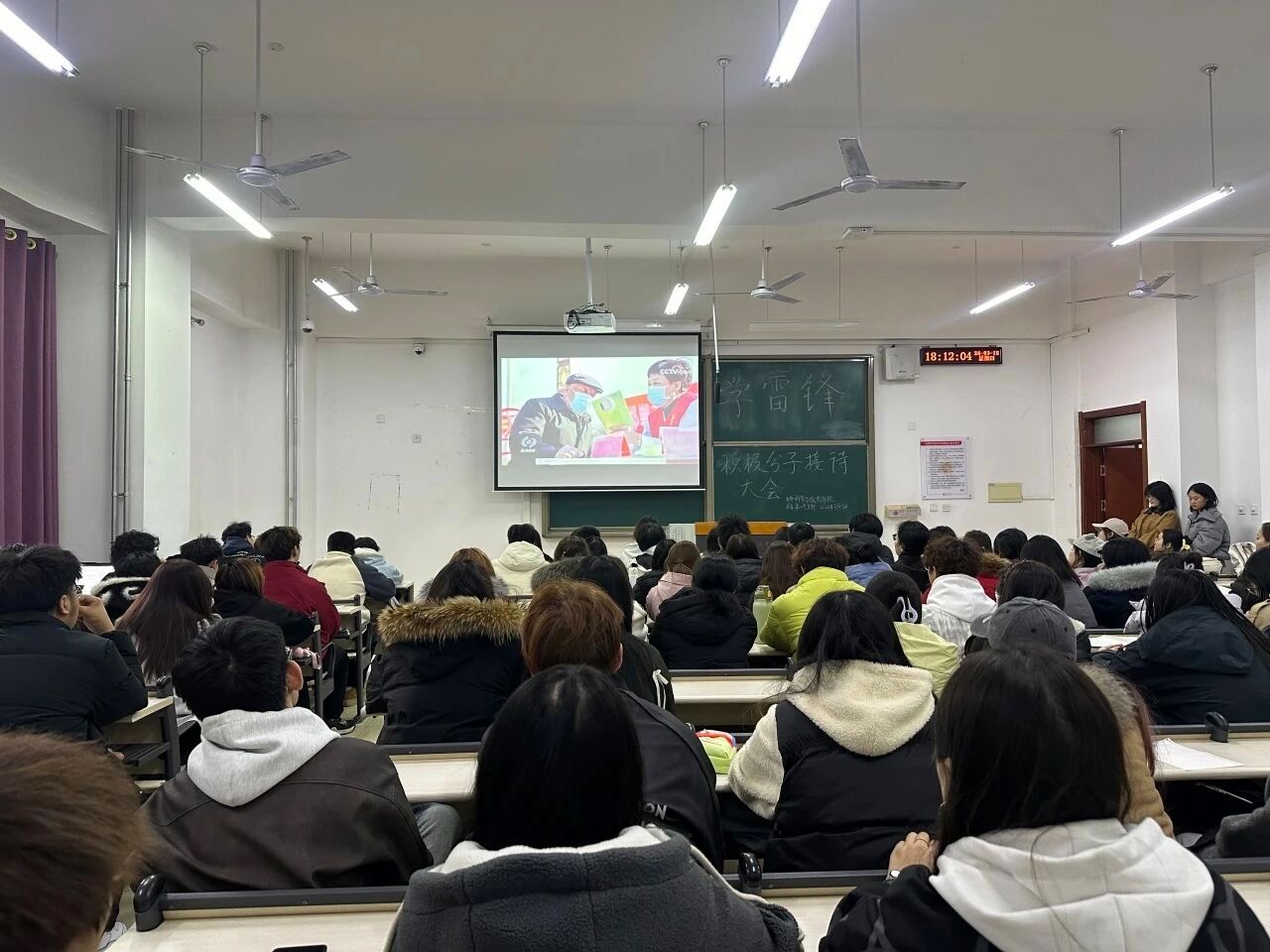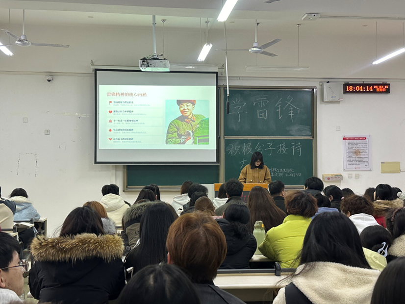 本次活动以“传承雷锋精神,争做先锋青年”为主线,摒弃形式化流程,采用沉浸式、互动式的方式展开。王雨含首先带领大家学习新时代雷锋精神的内涵,阐释其现实意义,引导大家认识到雷锋精神体现在日常的点滴善意和长期坚守之中。随后,大家共同观看相关视频,通过真实故事加深对奉献精神的理解。