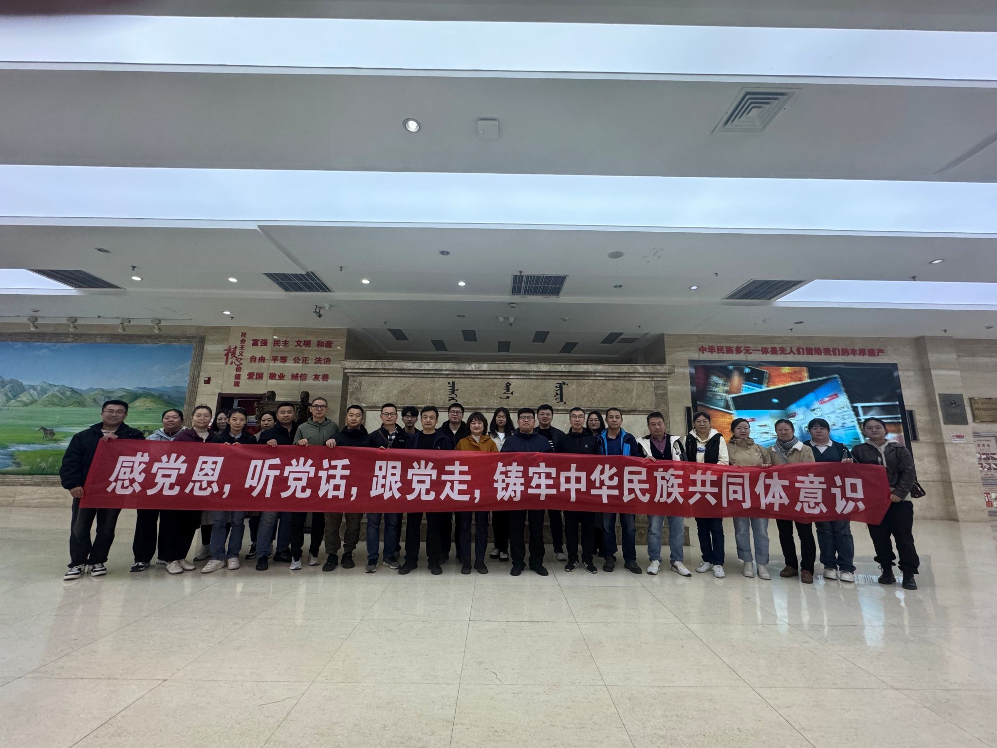 本次主题党日活动第一站是内蒙古敕勒川博物馆。敕勒川博物馆坐落于土默特右旗萨拉齐镇,是内蒙古博物院的分院。馆内设有历史文化展厅、革命历史展厅、民俗文化展厅三个基本陈列及土右旗廉洁文化馆等展厅,多方位呈现敕勒川文化繁衍和发展概貌。大量珍贵老照片和革命文物,以及生动的场景再现,展现了壮烈的革命历史,生动展示了新中国成立以来的辉煌成就。