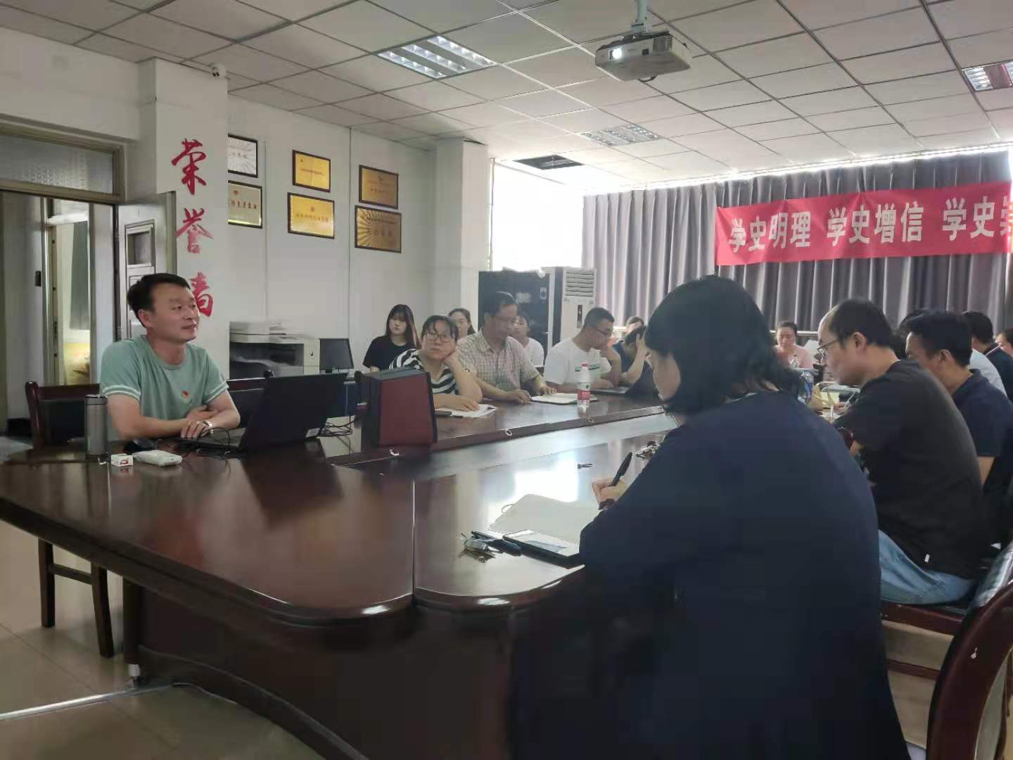杨彦斌教授从九个方面并结合习近平总书记在庆祝中国共产党成立100周年大会上的讲话,生动形象的为广大党员讲解习近平总书记关于党的历史的重要论述,①我们党已经发展成为一个走过百年光辉历程、在最大的社会主义国家执政七十多年、拥有九千五百多万党员的世界上最大的马克思主义执政党。中国共产党立志于中华民族千秋伟业,百年恰是风华正茂,要始终站在时代潮流最前列、站在攻坚克难最前沿、站在最广大人民之中,永远立于不败之地。②历史是最好的老师,我们党的历史是中国近现代以来历史最为可歌可泣的篇章,历史在人民探索和奋斗中造就了中国共产党,我们党团结带领人民又造就了历史悠久的中华文明新的历史辉煌。③学习党的历史,是坚持和发展中国特色社会主义、把党和国家各项事业继续推向前进的必修课,这门功课不仅必修,而且必须修好。④中国革命历史是最好的营养剂,重温这部伟大历史能够受到党的初心使命、性质宗旨、理想信念的生动教育,必须铭记光辉历史、传承红色基因。⑤学习党史、新中国史、改革开放史、社会主义发展史,广大党员要以学习党的历史为重点,做到知史爱党、知史爱国,在学习领悟中坚定理想信念,在奋发有为中践行初心使命。⑥我们党的历史就是我们党与人民心心相印、与人民同甘共苦、与人民团结奋斗的历史,一定要一块过、一块干,始终保持同人民群众的血肉联系。⑦全面宣传党的历史,充分发挥党的历史以史鉴今、资政育人的作用,是党和国家工作大局中一项十分重要的工作。⑧回顾历史,不是为了从成功中寻求慰藉,更不是为了躺在功劳簿上、为回避今天面临的困难和问题寻找借口,而是为了总结历史经验、把握历史规律,增强开拓前进的勇气和力量。⑨要树立正确党史观,坚持用唯物史观来认识历史,坚持实事求是的思想路线,分清主流和支流,坚持真理,修正错误,发扬经验,吸取教训。