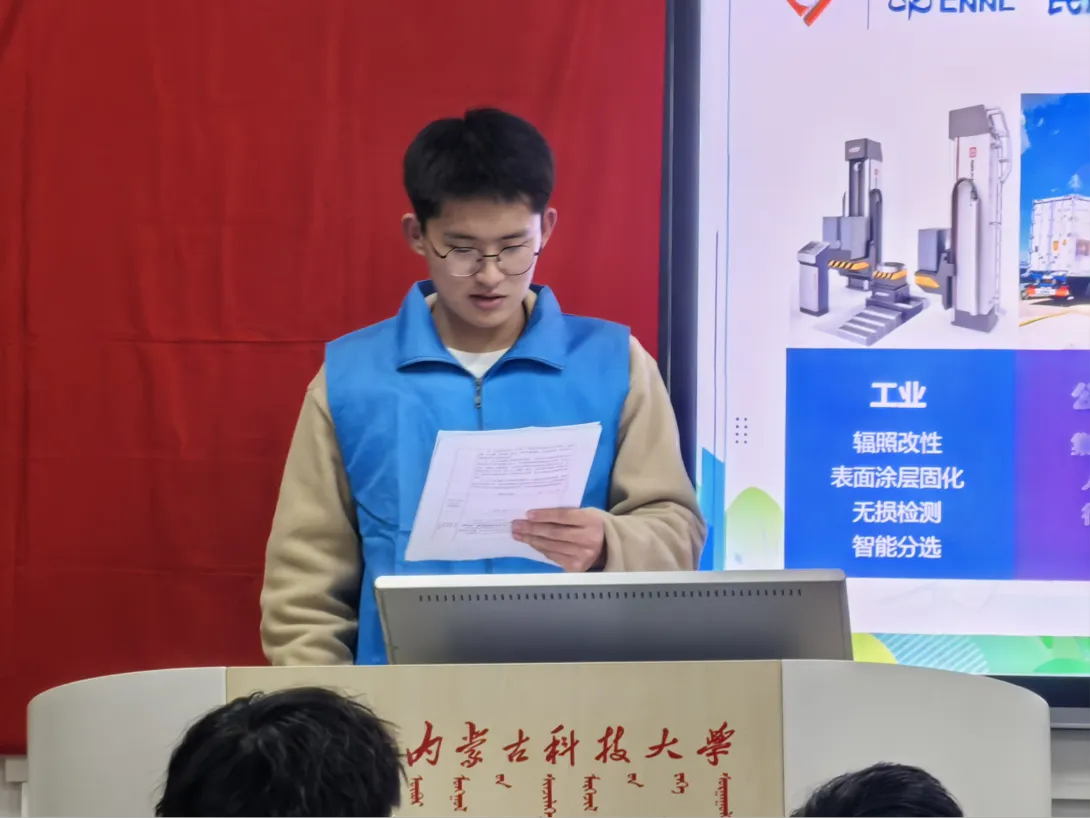 宣讲邀请矿业与煤炭公司“煤”好星辰志愿宣讲团成员刘晋甫担任主讲。刘晋甫从多领域视角出发,引导大家“感受”核技术在现实中的广泛应用,通过生动的技术演进故事、典型的行业案例与精彩的互动问答,呈现了一场兼具科学性与感染力的核技术科普盛宴。他系统讲解了核技术成像的基本原理与发展脉络,并深入介绍了其在工业制造、医疗健康、环境保护等多个领域的重要应用与实际成效。