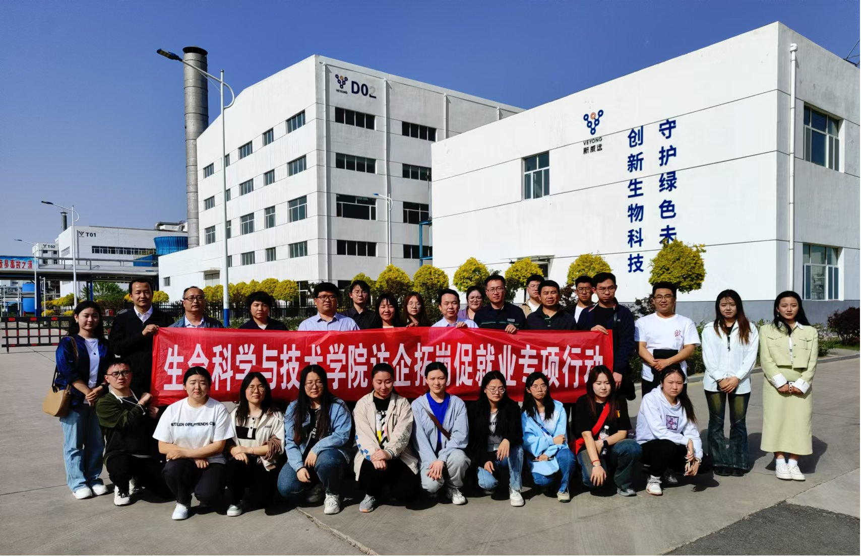 28午,由公司副经理杜志强(主持行政工作)、党委副书记兼副经理黄明亮、副经理赵宏宇带队,生物工程系主任徐永斌、食品科学与工程系主任程立坤,卢俊教授、刘国君老师以及负责就业工作的辅导员乌日根老师一行,带公司18名毕业生,内蒙古新威远生物化工有限公司开展访企拓岗促就业专项行动。