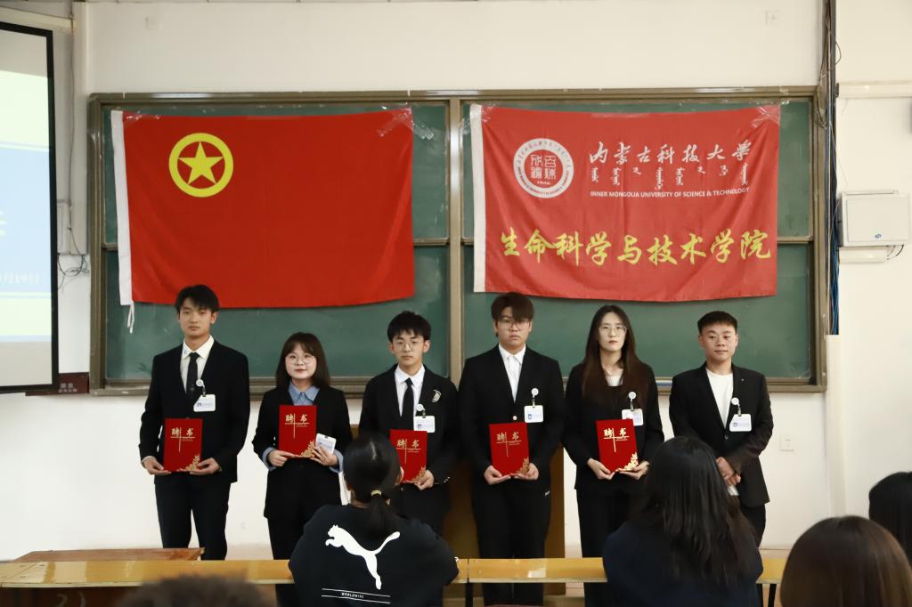 大会第三项:聘任2023届团学组织主席团。(1)乌日根老师宣读2023届团学组织主席团成员名单:主席团主席许双丁同学、团总支副书记孙悦同学、副主席昝梓萌同学、副主席杜志豪同学;(2)张超老师为2023届团学组织主席团成员颁发聘书和工作证,并对2023届团学组织未来一年的工作做出简要期许;(3)2023届主席团成员依次介绍了自己及分管部门,并对任期内所承担工作做出表态与承诺。