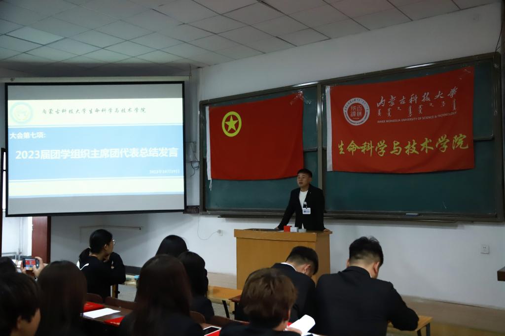 大会第七项:2023届团学组织主席团代表总结发言。主席团主席许双丁同学代表BG大游平台2023届团学组织全体成员进行了总结发言。
