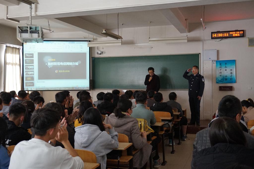 为进一步增强全院师生对当前高发电信网络诈骗的防范能力以及消防安全意识,公司于2020年10月23日下午在主教F201邀请市局教育培训支队理论教研室主任艾广勇为公司全体师生开展防电信网络诈骗及消防安全知识讲座。