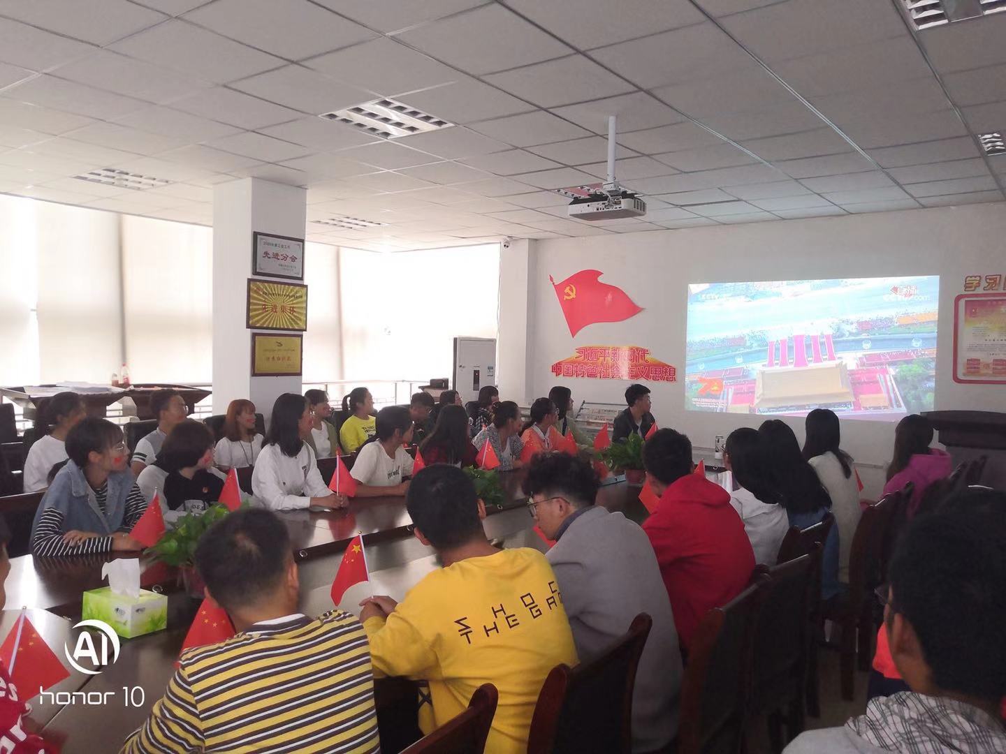 10月1日,公司组织师生收看了庆祝中华人民共和国70周年大会、阅兵式和群众游行活动,学习了习近平在庆祝中华人民共和国成立70周年大会上的讲话精神。