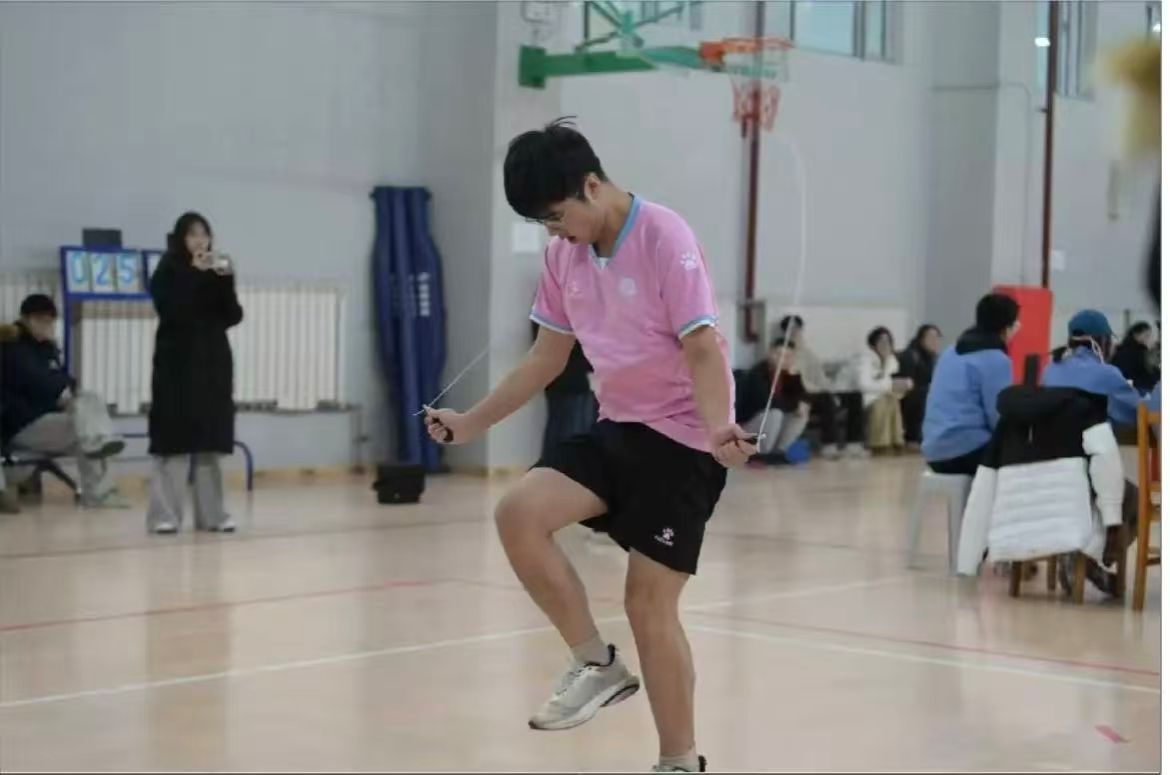 个人赛场,速度与激情碰撞。在竞争激烈的单项比赛中,公司选手表现抢眼:生物2025—2班边宇博同学在30秒单摇项目中一马当先,以绝对优势荣获第一名;食品2024—2班李开清同学于1分钟单摇赛场沉着应战,稳定发挥,取得第四名;生信2025—1班陈家琪在30秒双摇项目中突破自我,跻身第八名。每一次迅速的绳影摆动,每一次轻盈的腾空跃起,都是他们平日刻苦训练的生动写照,更是拼搏精神的有力彰显。